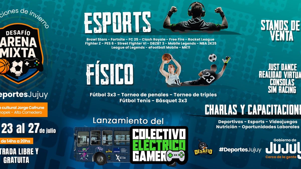 La Secretaría de Deportes de la Provincia de Jujuy presenta una propuesta innovadora para estas vacaciones de invierno: el Desafío Arena Mixta, un evento que une el deporte tradicional con el deporte electrónico. Se realizará del 23 al 27 de julio en el Centro Cultural Jorge Cafrune de Alto Comedero, con entrada libre y gratuita.