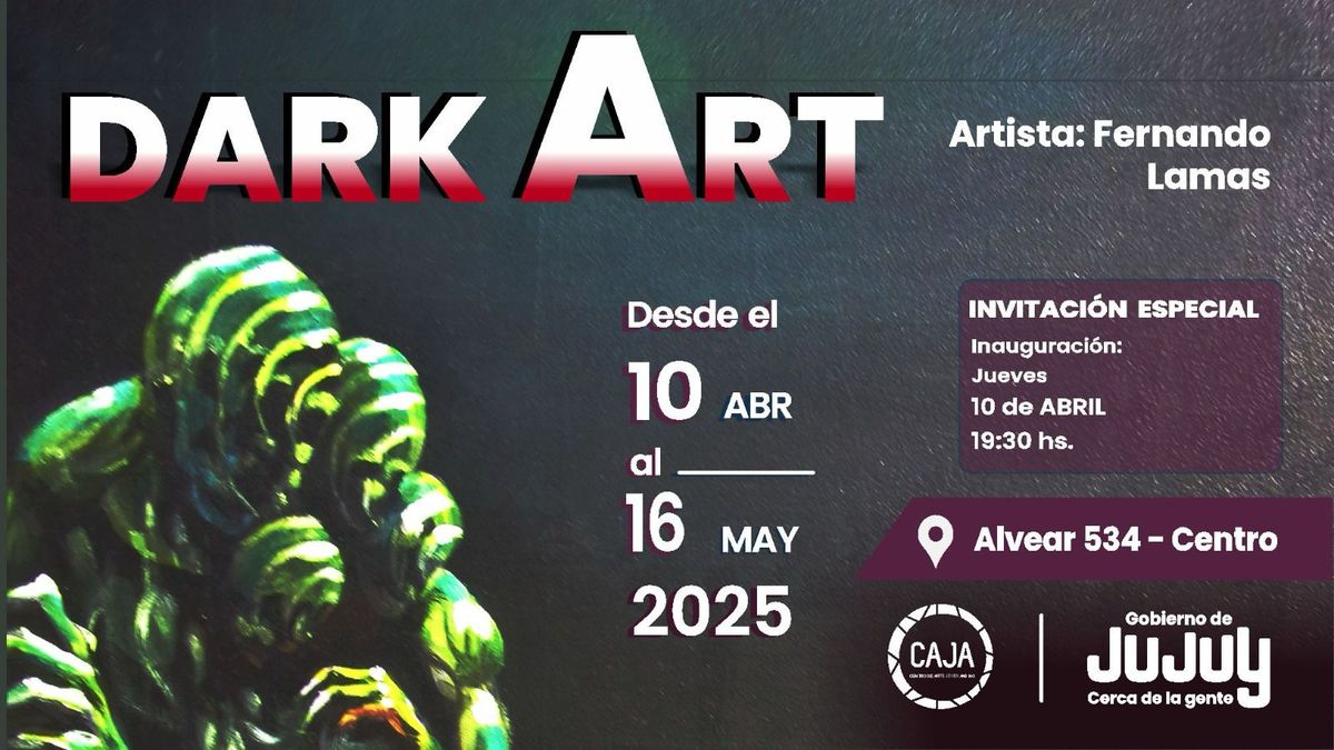 En abril y mayo de 2025, el Centro de Arte Joven Andino (CAJA) abrió sus salas a “Dark Art”, la propuesta de Fernando Lamas que tomó por asalto el downtown jujeño con una pregunta incómoda: ¿qué hacemos con lo que preferimos no ver? La exposición se montó en Alvear 534, con inauguración el jueves 10 de abril y visitas hasta el 16 de mayo, de lunes a viernes de 8 a 20. Entrada libre y gratuita.