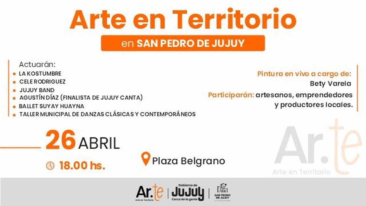 Cita: Impulsado por el Gobierno de Jujuy en articulación con el municipio de San Pedro, “Arte en Territorio” no solo promueve la cultura en sus múltiples lenguajes sino que reafirma el compromiso de seguir acercando propuestas que integren, inspiren y celebren lo nuestro.